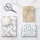 This fun gift wrap set features a repeating pattern of celebration element graphics including champagne glasses, streamers and hearts, a coordinating glittering gold and a sheet of deep aqua blue and gold polka dots. Each piece can be changed to any of these patterns by simply copying and pasting design layers. Search ID723 to see other color options and products with this design.