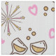 This fun fabric design features a repeating pattern of celebration element graphics including champagne glasses, streamers and hearts in soft pink and gold. Suitable for anniversaries or any romantic occasion. Search ID723 to see other colour options and products with this design.