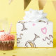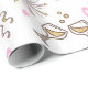 This fun gift wrap features a repeating pattern of celebration element graphics including champagne glasses, streamers and hearts in soft pink and gold. Suitable for anniversaries or any romantic occasion. Search ID723 to see other colour options and products with this design.