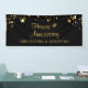 Celebrate any year anniversary with this personalised, custom colour banner featuring gold stars and your custom text in your choice of font styles and colours (shown in a gold calligraphy script text and black background). Choose from several banner sizes and indoor or outdoor materials on the ordering page. ASSISTANCE: For help with design modification or personalisation, colour change, resizing, transferring the design to another product or if you would like coordinating items, contact the designer BEFORE ORDERING via the Zazzle Chat MESSAGE tab below or email makeitaboutyoustore@gmail.com.