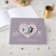 Pearl wedding anniversary party personalised guest book. Great to add a personalised touch to special pearl wedding anniversary party. Use this guest book for your guests to leave messages giving the happy couple an unique personalised gift. Personalise with your happy couples names and photo on both sides in the pearl heart effect photo frame. Grey with pearl beads heart effect art and design by Sarah Trett for www.mylittleeden.com