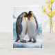 Two penguins stand closely together on a small ice floe surrounded by icy waters and distant glaciers for wedding annviersary.