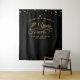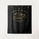 Celebrate any wedding anniversary with this personalised party decor backdrop, wall hanging, banner sign (shown in editable black and gold) or utilise as a fun photo op backdrop for pictures. The design features an elegant calligraphy script typography design of # YEARS INTO FOREVER which incorporates their number of years married and accented with gold interlocking linked hearts and gold confetti. Contact the designer via Zazzle Chat or makeitaboutyoustore@gmail.com if you'd like this design modified, on another product or would like coordinating items.