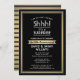 Can you keep a secret? Invite family and friends to an elegant and exciting surprise anniversary celebration with custom black, white and faux gold foil party invitations. All wording on this template is simple to personalise, including message that reads "Shhh! It's a SURPRISE." The design features a modern striped border, classic vintage art deco typography and stylish script calligraphy. Please note that gold is printed ombre colour, not metallic foil. Congratulations and Happy Anniversary!