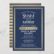 Can you keep a secret? Invite family and friends to an elegant and exciting surprise anniversary celebration with custom navy blue, white and faux gold foil party invitations. All wording on this template is simple to personalise, including message that reads "Shhh! It's a SURPRISE." The design features a modern striped border, classic vintage art deco typography and stylish script calligraphy. Please note that gold is printed ombre colour, not metallic foil. Congratulations and Happy Anniversary!