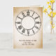 Roman numerals on clock face with no hands on sepia textured background for wedding anniversary
