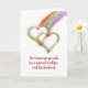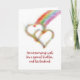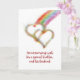 This unique greeting card celebrates the wedding anniversary of a special brother and his husband with a colorful airbrush effect of a rainbow ending in two interlocking hearts.