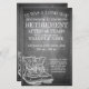 Announcement of retirement with old worn and weathered lace-up boots in chalkboard look. Gender-related text, the year, the honorary text, the date, the time, the place of celebration and RSVP can be customised.
