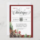 A burgundy deep red frame and a watercolor decoration of holly berries, greenery and pine cones in the lower corner. The back has a green gingham pattern.
