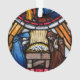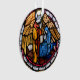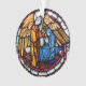 Featuring a stained glass image of the Annunciation on one side, and the Nativity of Christ on the other
