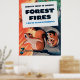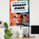 Squirrels are depicted in a forest setting with a prominent message about preventing forest fires. Bold text emphasises the importance of fire prevention, stating that nine out of ten fires can be avoided.