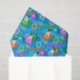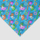 This colourful dog pool party tissue paper for Parson / Jack Russell Terrier lovers features a pattern of four different JRTs / PRTs with varied brown and black head/body markings and a charming doggy head tilt standing on their colourful blue, pink, orange and lime pool float mats with a tennis ball in a clear blue swimming pool, surrounded by colourful swimming noodles and balls and yellow starfish-shaped floating chew toys - Parson / Jack Russell pool party © katz_d_zynes 2021