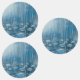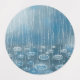 Painting of rain and puddles splashing on a blue background. A typical English summer day.