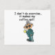Mildred is a grey haired elderly lady with some pretty strong opinions! On this funny exercise theme design she states "I don't do exercise...it makes my coffee spill."! Humourous exercise theme T-shirts, mugs,bags, cards, stickers, magnets, keychains, ornaments, and more, sure to make yourself and others chuckle!