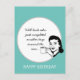 Funny birthday greetings features retro style woman with coffee cup and customisable "Well look who just completed another trip around the sun" text on vintage blue background.