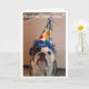This card is great fun and good quality. I loved the humour inside and on the back. There is the opportunity to change the orientation of this card from landscape to portrait, which I did. It is relatively straightforward to amend the typeface to fit the new orientation. It was well packaged with no plastic. The printing on this card is excellent.
