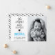 The Answer to Our Prayers Modern Typography script and custom Photo Boy Birth Announcement. You can personalise the photo, the name, birth stat and parents names in via the menu on the right. The back of the card is a matching geometric abstract pattern made of hand drawn dashes in black. The name of the baby boy is in blue. If you need help making this product your own drop me a line in the messenger