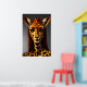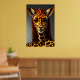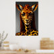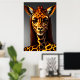 A portrait of a lady giraffe with long brown hair, giraffe skin and ears. This is a AI generated art.