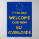 It draws upon the famous internet meme "I for one welcome our new overlords", giving it a contemporary, political twist by combining it with a graphic design based on the trendy 'Keep Calm and Carry On' posters first used in World War 2.