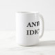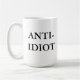 Tired of stupidity? This mug will tell the world how you feel. Great for anyone who has to deal with idiots on a regular basis, this mug says in plain, black-and-white, "Anti-Idiot".