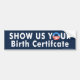 "Show Your Birth Cert" bumper sticker