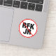 Democrats unite against RFK Jr. This political candidate for the 2024 election for president does not demonstrate democratic party values. A red strike through and a circle around the name of Robert F. Kennedy Jr on a political laptop sticker.