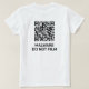 Self defense for the infowars. A t-shirt for those who do not want to be filmed or scanned. The QR code currently leads to an annoying website, but can be personalized to any site you want. The text can also be personalized. The design is the same on front and back. A likely deterrent against anyone seeking to film you when you would prefer they don't, as they won't want to risk harming their device by pointing it at the QR. It is not recommended that you use a link to actual malware or use this shirt to break any laws.