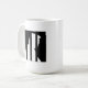 Anti trump art coffee mug for rational, pro democracy friends who will not vote for the felon. Black and white silhouette of Trump behind bars in jail. Anti Trump art to stop Trump in 2024!