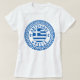 Antiparos, Greece women's T-Shirt featuring the National Flag Of Greece inside an Ancient Greek pattern circle symbol. Enjoy wearing this T-Shirt while you're on vacation on the beautiful Antiparos island or give it as a gift souvenir.