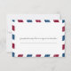 RSVP card to match the Distressed Airmail Letter Travel Design for your Destination Wedding. Message added to the back of the card. Dark Red and Blue colours. If you need a different location or a colour change or cards to go along with this theme please email paula@labellarue.com before placing an order so a new design can be created for you.
