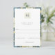 Elegant antique blue English garden floral and foliage textile pattern, wedding RSVP card. Front of card features delicate decorative monogram and pattern frame. Back of card features full pattern of antique English garden pattern in pretty palette of blue, green and champagne.