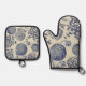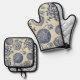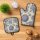 Antique Blue Flower Print Floral Oven Mitt & Pot Holder Set