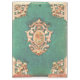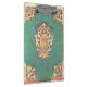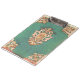 An antique look design with copper trim and green frayed fabric giving it an aged look. The centre is embellished with a decorative copper frame surrounding an opal gem. A unique and elegant design.