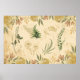 Pretty poster of floral and botanic plants on a background that looks similar to antiqued parchment paper.
