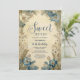 An elegant Sweet Sixteen design inspired by antique botanical prints and classic Art Nouveau framing. Soft ivory tones are layered with detailed blue florals, delicate foliage, and an ornamental border that feels straight out of a vintage herbarium.