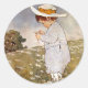 Antique Child Picking Daisies Flowers Classic Round Sticker