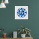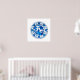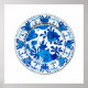 Print of an antique Chinese porcelain plate, in shades of cobalt and deep indigo blue with white, in an ornate 8-way border, surrounding peony flowers, leaves and clouds - digitally enhanced and color-adjusted
