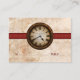 This Antique Clock Wedding Place Card features a vintage timepiece prominently centred on top of a metal ball chain and sleek dark red striped border. The distressed look of the grungy paper texture background completes the antiqued feel of this unique escort card. This offbeat wedding place card is perfect for a vintage or steampunk inspired wedding. Space is provided on this design to write in the names and table numbers where each of your guests will be seated. Click on "Customise It" to find additional options to personalise this design.