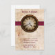 This Antique Clock Wedding Response Card features a vintage timepiece prominently centred on top of a metal ball chain and sleek fuchsia pink striped border. The distressed look of the grungy paper texture background completes the antiqued feel of this unique RSVP card. This offbeat wedding response card is perfect for a vintage or steampunk inspired wedding. Easy to customise, simply add your wedding details in the text fields provided. Click on "Customise It" to find additional options to personalise this design.