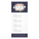 Elegant floral rack card design displays your services, price list or business information beautifully. Design features a watercolor floral logo in blush pink, cream and sage green, framing your name and/or business name against a midnight navy blue background. Includes four customisable headings and body text fields, and space for your business contact information along the bottom. Cards reverse to a floral pattern in matching colours. To adjust layout, enter your text and then use the Customise function to change positioning and font sizes.