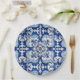 Antique Floral tile pattern in blue and white transported to the surface of a modern paper plate, preserving its history and tradition. Azulejo is a form of Portuguese or Spanish painted, tin-glazed, ceramic tilework. It has become a typical aspect of Portuguese culture. Portugal imported azulejo tiles from Spain, and their use was widespread in religious and private architecture, particularly on facades.
