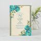 Step into timeless elegance with this vintage teal and gold floral arch wedding design. Featuring ornate architectural frames, blooming golden roses, and intricate turquoise patterns, this design is perfect for couples who adore a rich, romantic aesthetic. The warm vintage tones paired with detailed floral artwork create a luxurious and sophisticated feel, ideal for formal and destination celebrations.