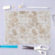 A vintage design of a gold damask stencil pattern over a script background. Perfect for gift wrapping or craft projects.
