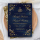 Antique Gold Frame Navy Blue Islamic Wedding Invitation