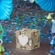 Favour boxes featuring a vintage potion bottle with gothic florals in accents of burgundy and black with a grungy goldish background.