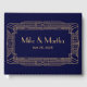 Keeping in the 1920s Great Gatsby tradition this guest book features a bold geometric decorative pattern and lettering in gold on a navy blue background.