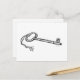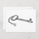 This unique postcard features a print of a pen-and-ink drawing of an old fashioned antique key. Artwork copyright: Dominic White. All rights reserved.