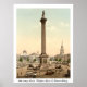 Vintage England view of Trafalgar Square & Nelson's Column, London England, with National Gallery in background. Antique 19th century U.K. print .