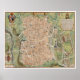Antique map of Madrid, Spain from around 1700 showing streets, buildings, parks in color.