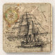 Antique Old General France Map & Ship Lithograph Coaster